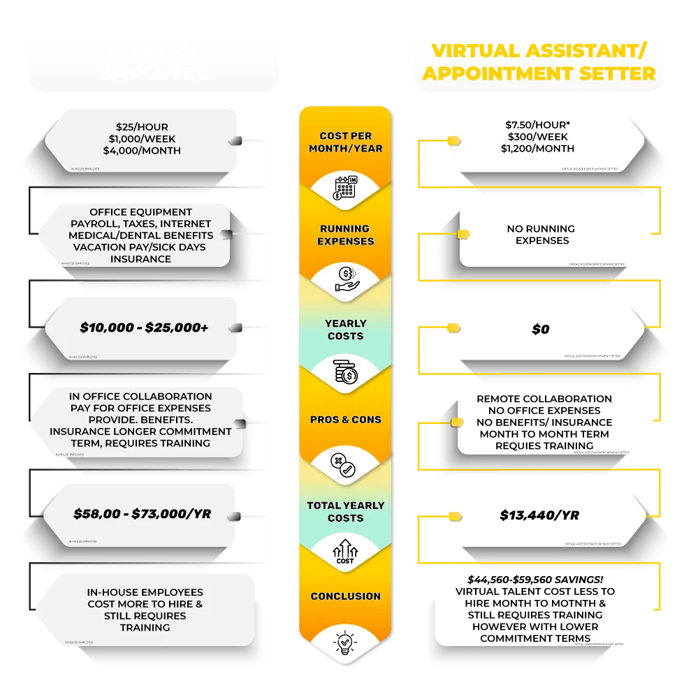 “Say hello to the ultimate productivity partner, the VA/Appointment Setter! With our virtual assistant services, you’ll have access to a dedicated, professional, and highly skilled team ready to take on any task, big or small.